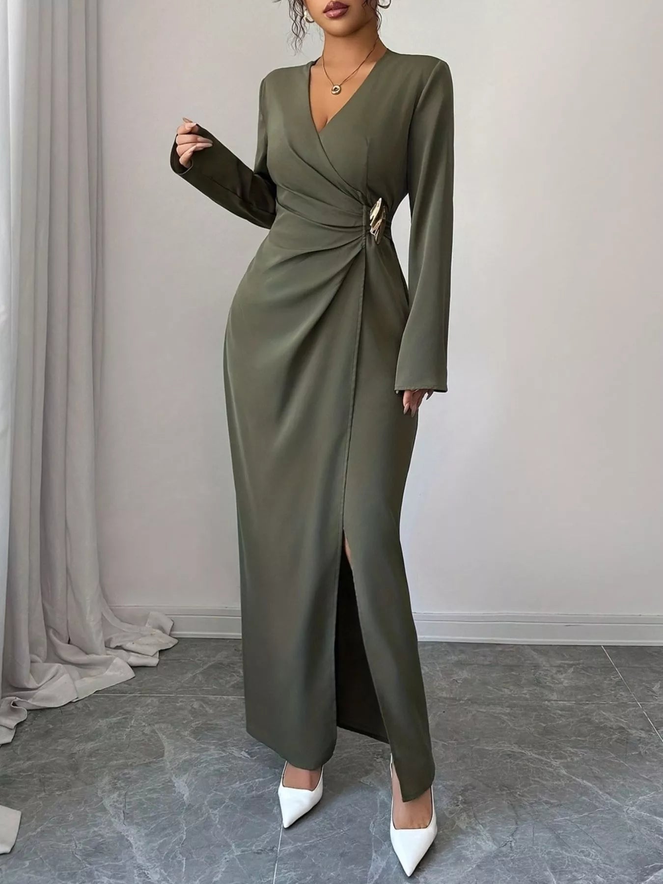 - Features:Slit,Ruched